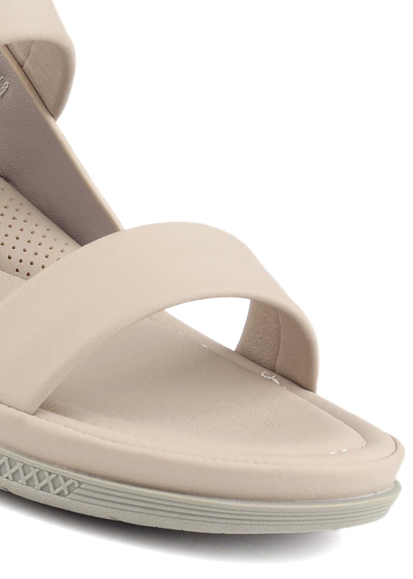 Footlabb women flats, beige slip-on sandals, stylish woven, faux leather ladies slippers, casual footwear, comfortable silicon sole flats, office wear sandals for women, designer buckle flats, Footlabb trendy slides, lightweight summer footwear, elegant women slippers.