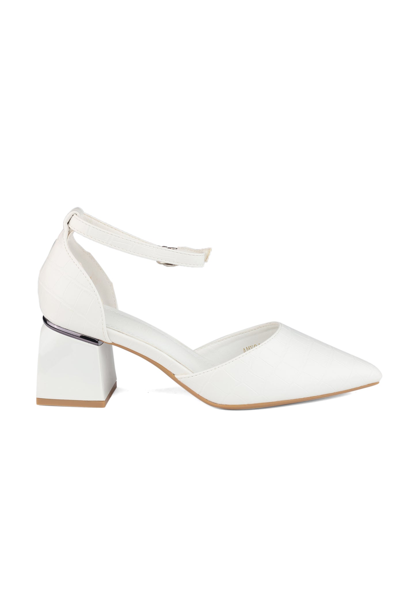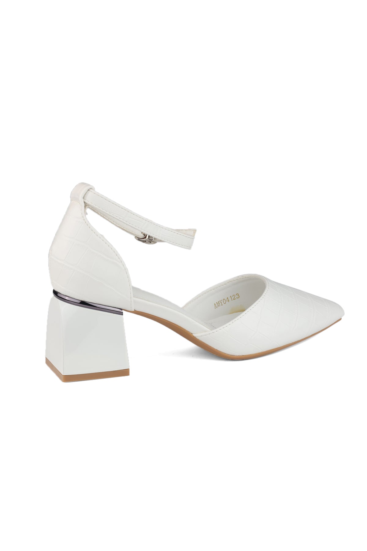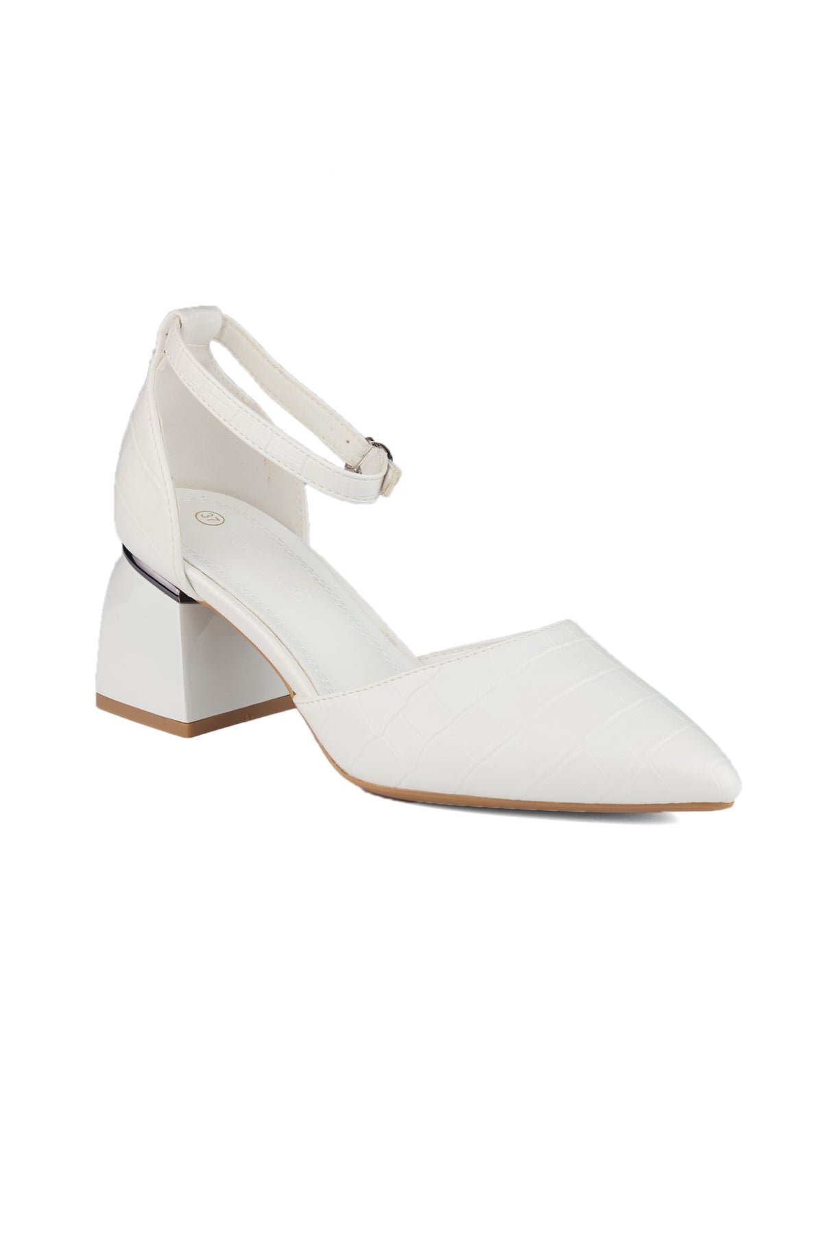 Footlabb Women's Premium Faux Leather White Block Heel Sandals | Stylish Ankle Strap Party Heels with Silicon Sole