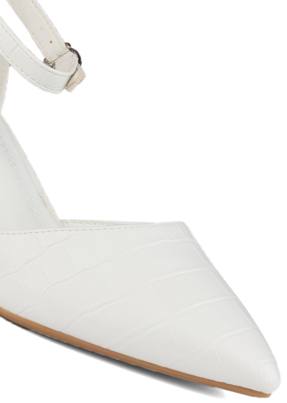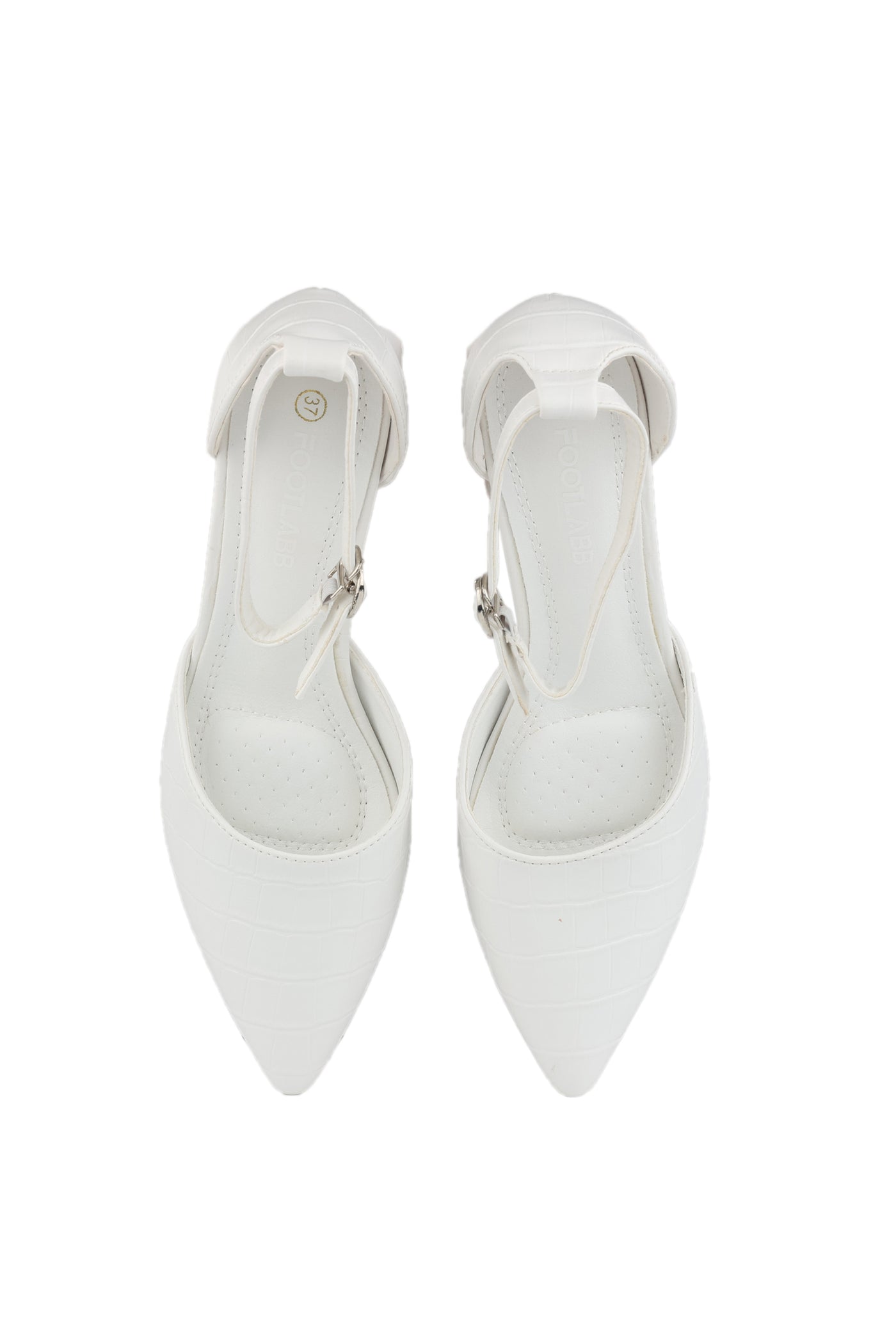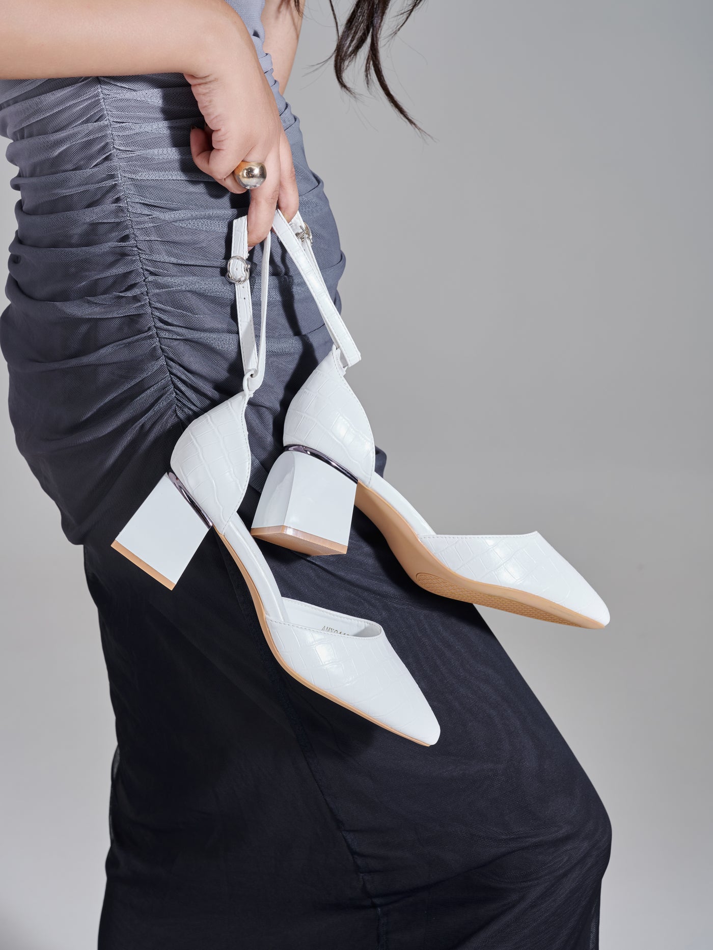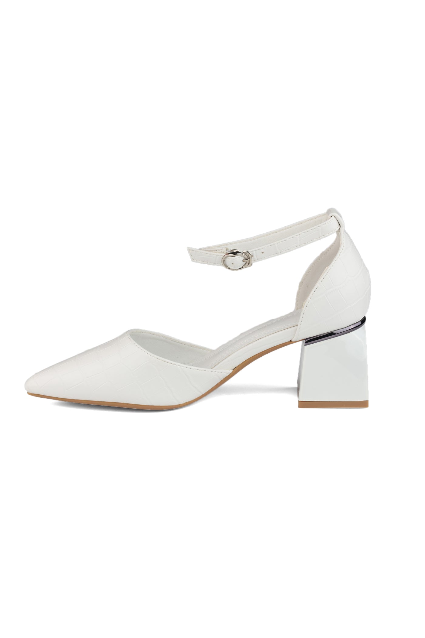 Footlabb Women's Premium Faux Leather White Block Heel Sandals | Stylish Ankle Strap Party Heels with Silicon Sole