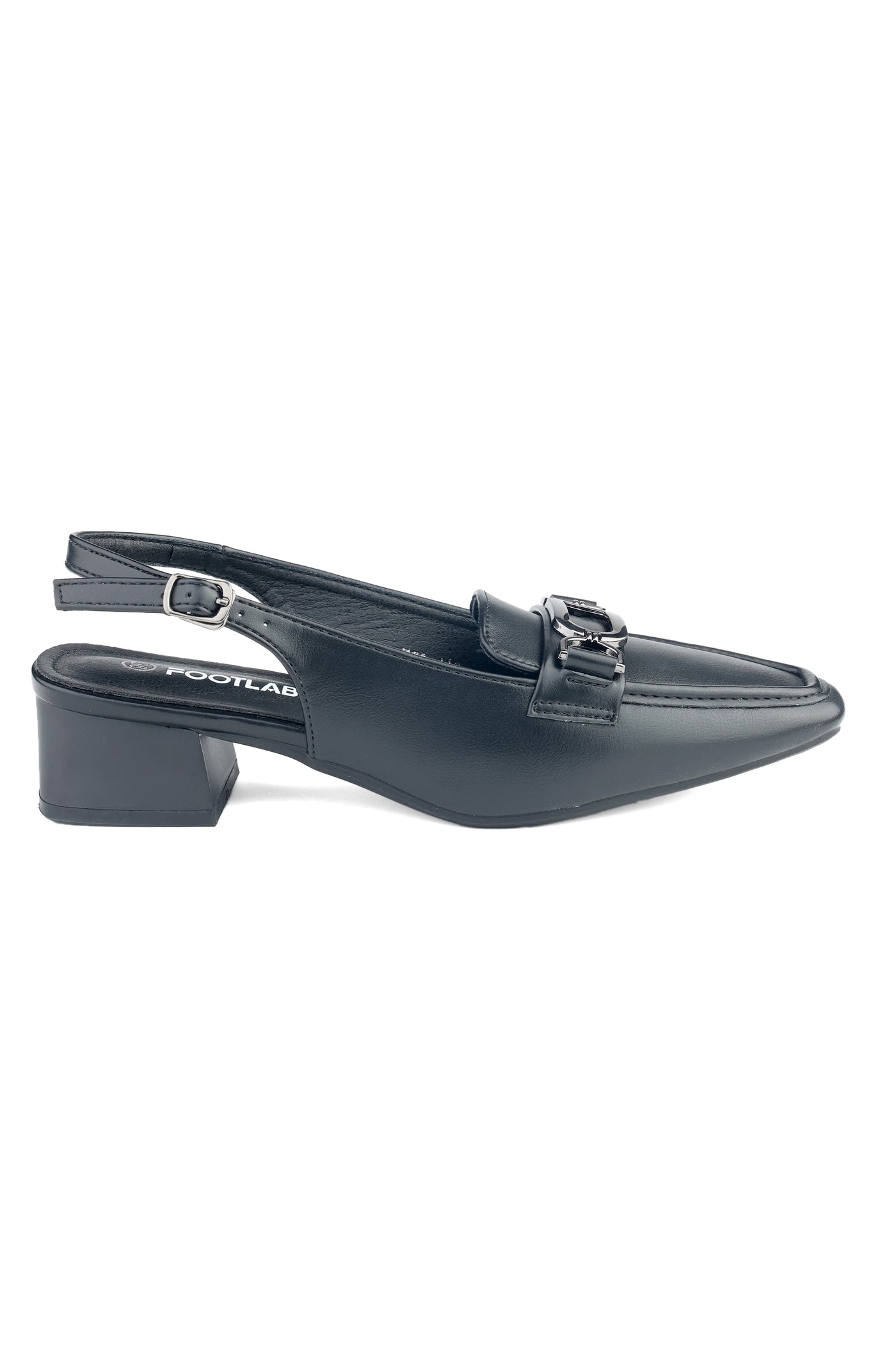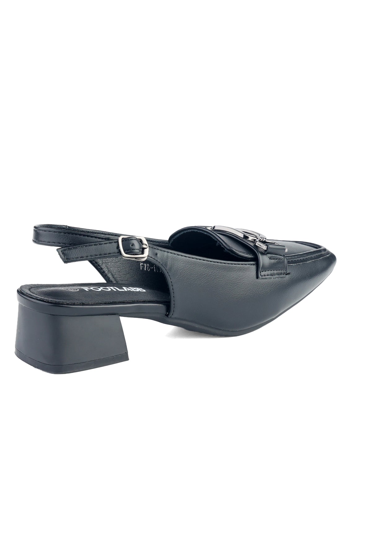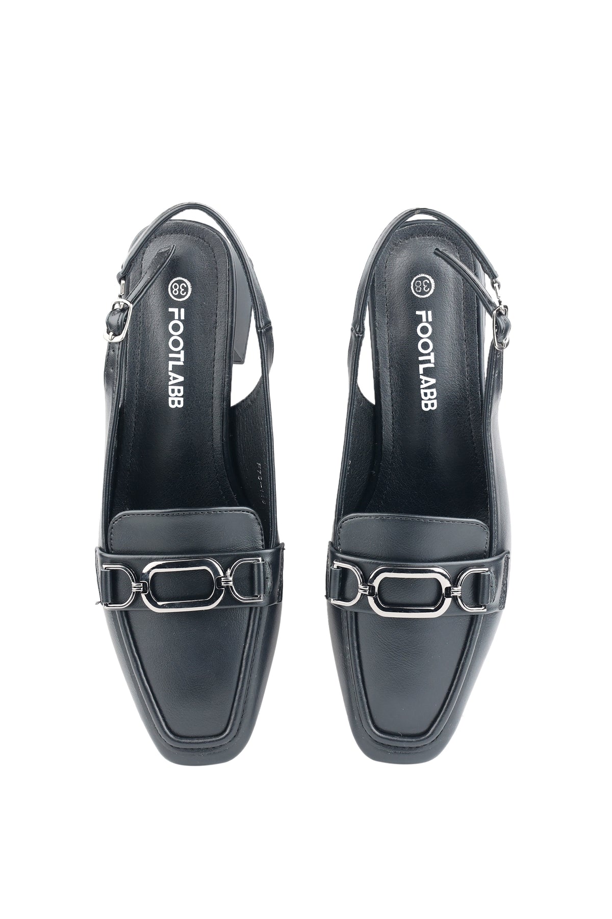 Step into sophisticated comfort with Footlabb Women's Slingback Mules, expertly crafted from premium imported Faux Leather for a sleek and modern look. Featuring an elegant metal buckle design on the front and an adjustable slingback strap for a secure fit, these mules type sandal blend timeless style with everyday functionality.