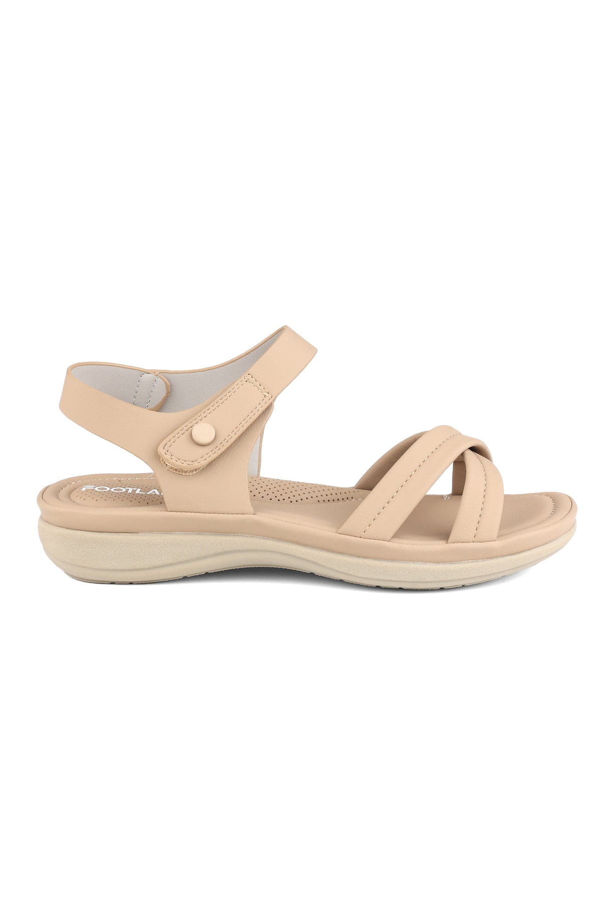 Footlabb Women’s Comfortable Faux Leather Strap Sandals | Premium Imported Material | Soft Cushioned Footbed with Flexible Silicon Sole | Everyday Casual Wear